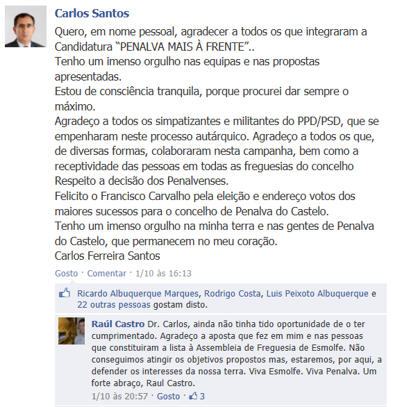 Terminadas as eleições, registamos 2 posições dignas das candidaturas do PSD: